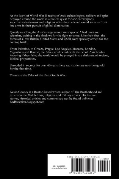 At the dawn of World War II teams of Axis archaeologists, soldiers and spies deployed around the world in a tireless quest for ancient weapons, supernatural talismans and religious relics they believed would serve as front line arms in their quest for global domination. Quietly watching the Axis' strange search were special Allied units, waiting in the shadows for the fight to come. From Palestine, to Greece, Los Angeles, Moscow, Prague, Yugoslavia, London and Boston, the Allies would clash with their enemies knowing if they failed would be plunged into a darkness of ancient, Biblical proportions. This unique collection of short stories explores the once secret tales of supernatural warfare- Tales of the First Occult War.