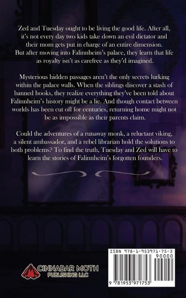 Zed and Tuesday ought to be living the good life. After all, it's not every day two kids take down an evil dictator and their mom gets put in charge of an entire dimension. But after moving into Falinnheim's palace, they learn that life as royalty isn't as carefree as they'd imagined. Mysterious hidden passages aren't the only secrets lurking within the palace walls. When the siblings discover a stash of banned books, they realize everything they've been told about Falinnheim's history might be a lie. And though contact between worlds has been cut off for centuries, returning home might not be as impossible as their parents claim. Could the adventures of a runaway monk, a reluctant viking, a silent ambassador, and a rebel librarian hold the solutions to both problems? To find the truth, Tuesday and Zed will have to learn the stories of Falinnheim's forgotten founders.