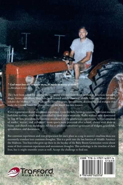 " God must love the common man; he made so many of them." -Abraham Lincoln They have been called the silent majority-those who toiled from dawn 'til dusk in America's factories, shops, farms, and offices. They have been termed middle class and Middle America. Many of them inhabit the Midwest. They produce the limitless grain, spreadsheets, documents, and widgets that make the United States the greatest society the world has ever known. If ever a generation shared a common experience, it was the baby boom generation. Television markets had three stations, which were controlled by three major networks. Radio stations were dominated by Top 40 hits, providing the common soundtrack of the generation's experiences. School consisted of readin', writin', and 'rithmetic', team sports were practiced after school, chores were done at home, and church was mandatory. All this to produce tomorrow's generators of widgets, grainfields, spreadsheets, and documents. But common experiences and rote preparation for one's place or cog in society's machine does not necessarily translate into common thoughts. This is a peek into the last bastion of Middle America: the Midwest. Two boys who grew up there in heyday of the baby boom generation wrote about some of their common experiences and uncommon thoughts. This anthology is the timeline of their lives, but it might resemble yours as well. Accept the challenge to find out.