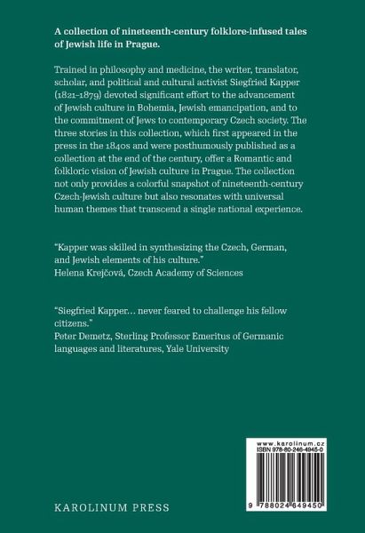 A collection of nineteenth-century folklore-infused tales of Jewish life in Prague. Trained in philosophy and medicine, the writer, translator, scholar, and political and cultural activist Siegfried Kapper (1821-1879) devoted significant effort to the advancement of Jewish culture in Bohemia, Jewish emancipation, and to the commitment of Jews to contemporary Czech society. The three stories in this collection, which first appeared in the press in the 1840s and were posthumously published as a collection at the end of the century, offer a Romantic and folkloric vision of Jewish culture in Prague. The first story, "Genenda," displays Kapper's operatic eye for detail and drama with its account of a dutiful rabbi's daughter being swept away by a dashing young man, a Christian nobleman disguised as a Jew. "The Curious Guest" is an intricate tale of a quest for wisdom and power. The final story, "Glowing Coals," is a supernatural tale of romantic desire and revenge, displaying Kapper's skill at deploying the tropes of folklore for dramatic literary effect. The collection not only provides a colorful snapshot of nineteenth-century Czech-Jewish culture but also resonates with universal human themes that transcend a single national experience.