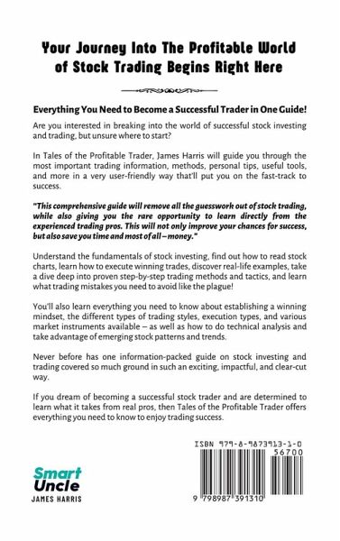 New to the stock market? Are you interested in breaking into the world of successful stock investing but unsure where to start? No problem! Our step-by-step guide will help you become a profitable investor-even with no experience. Everything You Need to Know to Become a Successful Trader in a Single Book. In Tales of the Profitable Trader, James Harris will guide you through the most important trading information, methods, personal tips, useful tools, and more in a very user-friendly way that'll put you on the fast track to success. Learn the proven principles, methods, and tactics of modern price action, from theory to practice. And what's the best way for you to learn the proven principles, methods, tactics, and more of stock trading? It's simple-to learn directly from people who've already done it. This complete guide will take all the guesswork out of trading stocks, and it will also give you a rare chance to learn directly from other traders. This will not only improve your trading success but also save you time and, most importantly, money. Understand the fundamentals of stock investing, find out how to read stock charts, learn how to execute winning trades, discover real-life examples, take a deep dive into proven step-by-step trading methods and tactics, and learn what trading mistakes you need to avoid like the plague. You'll also learn everything you need to know about establishing a winning mindset, the different types of trading styles, execution types, and various market instruments available, as well as how to do technical analysis and take advantage of emerging stock patterns and trends. Never before has one information-packed guide on stock investing and trading covered so much ground in such an exciting, impactful, and clear-cut way. Your Journey Into The Profitable World of Stock Trading Begins Right Here.