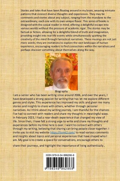 Paper back of short tales and stories. Ideal for the casual reader. Contains intrigue, strange tales, and paranormal events.