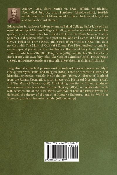 Andrew Lang, (born March 31, 1844, Selkirk, Selkirkshire, Scot.-died July 20, 1912, Banchory, Aberdeenshire), Scottish scholar and man of letters noted for his collections of fairy tales and translations of Homer. Educated at St. Andrews University and at Balliol College, Oxford, he held an open fellowship at Merton College until 1875, when he moved to London. He quickly became famous for his critical articles in The Daily News and other papers. He displayed talent as a poet in Ballads and Lyrics of Old France (1872), Helen of Troy (1882), and Grass of Parnassus (1888) and as a novelist with The Mark of Cain (1886) and The Disentanglers (1902). He earned special praise for his 12-volume collection of fairy tales, the first volume of which was The Blue Fairy Book (1889) and the last The Lilac Fairy Book (1910). His own fairy tales, The Gold of Fairnilee (1888), Prince Prigio (1889), and Prince Ricardo of Pantouflia (1893) became children's classics. Lang also did important pioneer work in such volumes as Custom and Myth (1884) and Myth, Ritual and Religion (1887). Later he turned to history and historical mysteries, notably Pickle the Spy (1897), A History of Scotland from the Roman Occupation, 4 vol. (1900-07), Historical Mysteries (1904), and The Maid of France (1908). His lifelong devotion to Homer produced well-known prose translations of the Odyssey (1879), in collaboration with S.H. Butcher, and of the Iliad (1883), with Walter Leaf and Ernest Myers. He defended the theory of the unity of Homeric literature, and his World of Homer (1910) is an important study. (wikipedia.org)