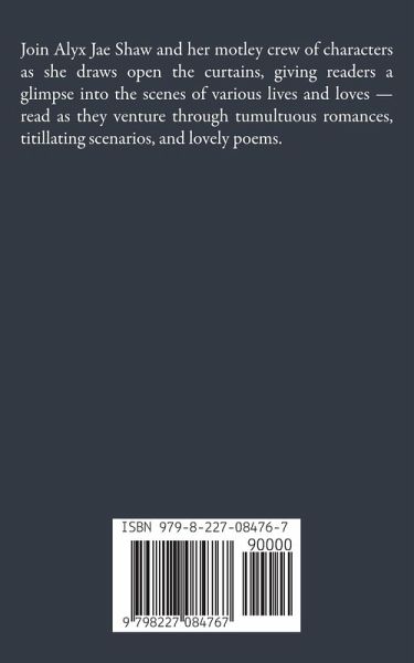 Join Alyx Jae Shaw and her motley crew of characters as she draws open the curtains, giving readers a glimpse into the scenes of various lives and loves - read as they venture through tumultuous romances, titillating scenarios, and lovely poems.