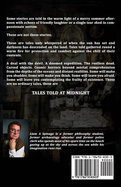 Some stories are told in the warm light of a merry summer afternoon with echoes of friendly laughter or a single tear shed in compassionate sorrow. These are not those stories. These are tales only whispered of when the sun has set and darkness has descended on the land. Tales told gathered round a warm fire for protection and comfort against the chill of their contents. A deal with the devil. A doomed expedition. The restless dead. Cursed objects. Cosmic horrors beyond mortal comprehension from the depths of the oceans and distant realities. Some will make you shudder. Some will make you think. Some will leave you afraid. Some will leave you contemplating the frailty of existence. These are no ordinary tales, these are TALES TOLD AT MIDNIGHT