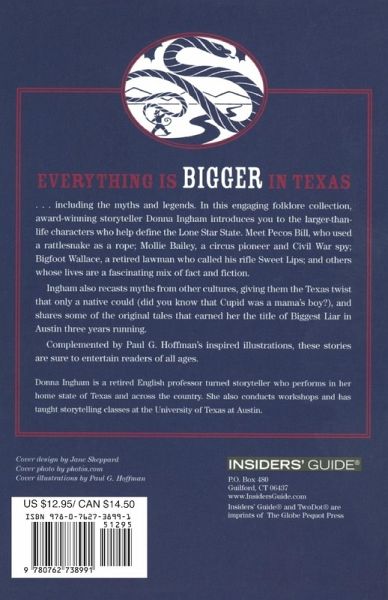 Storytelling is both an art form and a means of passing on significant elements of a culture--the history, the traditions, the humor, the pathos. It is a way of entertaining and being entertained. With this compilation of Texas--and Texanized--favorite myths and legends, award-winning tale teller Donna Ingham applies her own unmistakable voice to traverse her home state through such stories as: >"The Coming of the Bluebonnet"--an oft-collected Commanche myth about love and sacrifice and the origin of the Texas state flower >"The Story Behind the Story"--about two early cattlemen and the basis for an episode in Larry McMurtry's "Lonesome Dove" >"The Life and Times of Pecos Bill"--a selection of tales about this legendary folk hero >"Diamond Bill"--about an east Texas rattlesnake who fought in the Civil War >"Cupid Was a Mama's Boy"--a Texanized classic Greek myth >And much more!