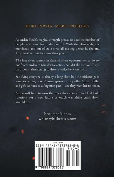 More power, more problems. As Arden Finch's magical strength grows, so does the number of people who want her under control. With the elementals, the mundanes, and out-of-state elves all making demands, she and Troy must act fast to secure their power. The first elven summit in decades offers opportunities to do so, but forces Arden to take drastic action. Amidst the turmoil, Troy's past looms, threatening to drive a wedge between them. Satisfying everyone is already a long shot, but the trickster gods want something too. Pressure grows as they offer Arden riddles and gifts as hints to a forgotten pact-one they want her to honor. Arden will have to own the roles she's claimed and find bold solutions for a new future or watch everything crash down around her. Content warnings: This book contains strong physical violence and gore, on-page death, swearing, slurs (not toward any real racial or ethnic group/identity), alcohol use, knife violence, threat of sexual violence, mention of past abuse by a guardian, threats by law enforcement, blood-drinking, and consensual on-page sex scenes.