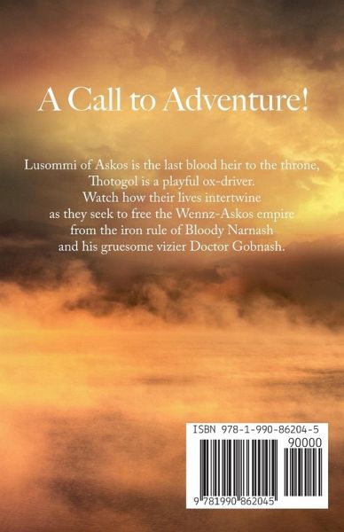 Lusommi of Askos is the last blood heir to the throne, Thotogol is a playful ox-driver. Watch how their lives intertwine as they seek to free the Wennz-Askos empire from the iron rule of Bloody Narnash and his gruesome vizier Doctor Gobnash.