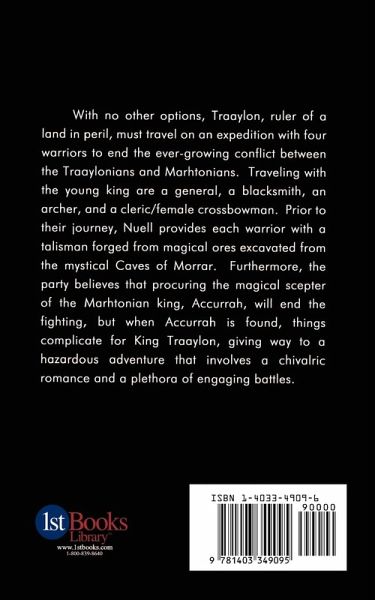 With no other options, Traaylon, ruler of a land in peril, must travel on an expedition with four warriors to end the ever-growing conflict between the Traaylonians and Marhtonians, resulting in a hazardous adventure and a chivalric romance.