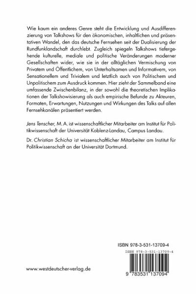 Wie kaum ein anderes Genre steht die Entwicklung und Ausdifferenzierung von Talkshows für den ökonomischen, inhaltlichen und präsentativen Wandel, den das deutsche Fernsehen seit der Dualisierung der Rundfunklandschaft durchlebt. Zugleich spiegeln Talkshows tiefergehende kulturelle, mediale und politische Veränderungen moderner Gesellschaften wider, wie sie in der alltäglichen Vermischung von Privatem und Öffentlichem, von Unterhaltsamen und Informativem, von Sensationellem und Trivialem und letztlich auch von Politischem und Unpolitischem zum Ausdruck kommen. Hier zieht der Sammelband eine umfassende Zwischenbilanz, in der sowohl die theoretischen Implikationen der Talkshowisierung als auch empirische Befunde zu Akteuren, Formaten, Erwartungen, Nutzungen und Wirkungen des Talks auf allen Fernsehkanälen präsentiert werden