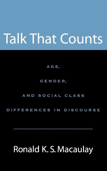 In Talk That Counts, distinguished sociolinguist Rinals Macaulay provides a new way of examining sociolinguistic variation. Linguists traditionally take a limited sample of linguistic data from a given population and look at phonological and morphological variables. Macaulay proposes a much different and highly quantitative approach to the study of variation, which correlates features of discourse with three social categories: social class, gender, and age. He uses as data a sample from 33 speakers of English in Glasgow, and his conclusions indicate that age accounts for the greatest number of differences, followed by gender, with social class accounting for the most variation within a group. Macaulay's work offers a new methodological paradigm to an audience of sociolinguists and others like sociologists concerned with discourse analysis.