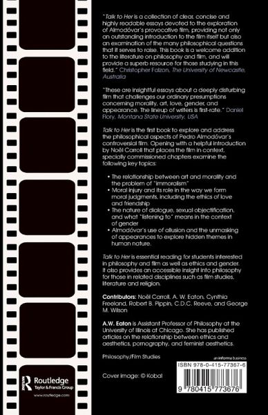 Including a biography of Almodóvar, Talk to Her is essential reading for students interested in philosophy and film as well as ethics and gender. It is also provides an accessible and informative insight into philosophy for those in related disciplines such as film studies, literature and religion.