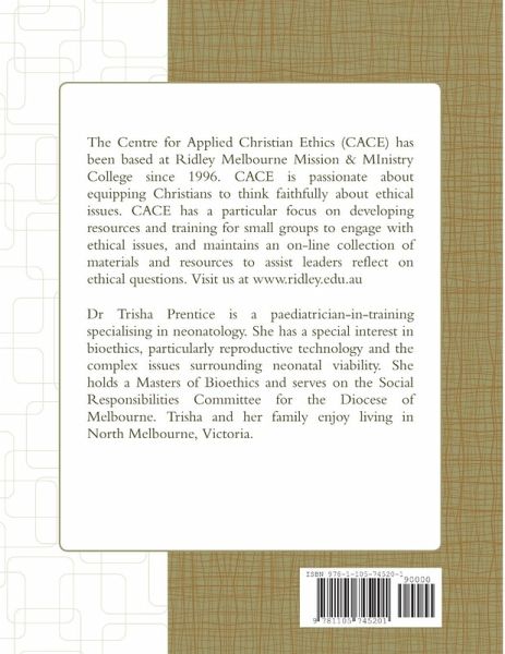 Issues relating to infertility and ART are increasingly common, and it is critical that Christians engage in an intelligent and faithful way with these emotive and closely felt issues. In this booklet, Dr Trisha Prentice offers an overview and sensitive Christian engagement with assisted reproductive technology. Includes questions for group discussion.