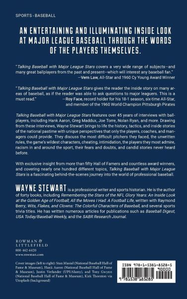 An entertaining and illuminating inside look at Major League Baseball through the words of the players themselves. Imagine you had the opportunity to sit down with ballplayers such as Hank Aaron, Greg Maddux, Joe Torre, and Nolan Ryan. You might ask them about their star teammates and hated opponents. You might talk about the obstacles they overcame and the strategies that led to their success. Or you might just talk about life in the majors. In Talking Baseball with Major League Stars, Wayne Stewart provides readers with all that and more. Featuring over 45 years of interviews, Stewart details the history, tactics, and inside stories of the national pastime with unique perspectives that only the players, coaches, and managers could provide. They discuss the most difficult pitchers they faced, the unwritten rules, the game's wildest characters, cheating, intimidation, the players they most admire, racism in and around the sport, and their fears and doubts, along with candid stories never heard before. Including exclusive insight from more than fifty Hall of Famers and countless award winners, and covering nearly one hundred different topics, Talking Baseball with Major League Stars is a fascinating behind-the-scenes journey into the world of professional baseball.