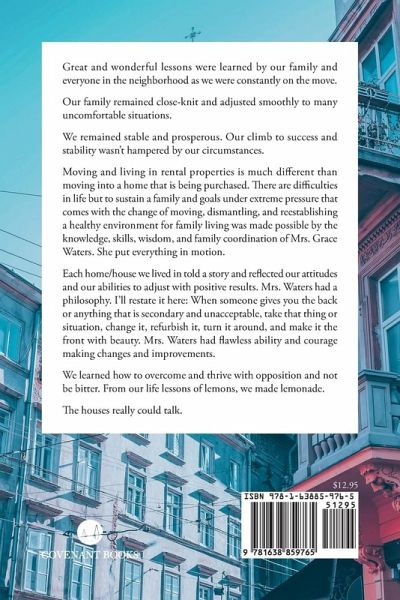 Great and wonderful lessons were learned by our family and everyone in the neighborhood as we were constantly on the move. Our family remained close-knit and adjusted smoothly to many uncomfortable situations. We remained stable and prosperous. Our climb to success and stability wasn't hampered by our circumstances. Moving and living in rental properties is much different than moving into a home that is being purchased. There are difficulties in life but to sustain a family and goals under extreme pressure that comes with the change of moving, dismantling, and reestablishing a healthy environment for family living was made possible by the knowledge, skills, wisdom, and family coordination of Mrs. Grace Waters. She put everything in motion. Each home/house we lived in told a story and reflected our attitudes and our abilities to adjust with positive results. Mrs. Waters had a philosophy. I'll restate it here: When someone gives you the back or anything that is secondary and unacceptable, take that thing or situation, change it, refurbish it, turn it around, and make it the front with beauty. Mrs. Waters had flawless ability and courage making changes and improvements. We learned how to overcome and thrive with opposition and not be bitter. From our life lessons of lemons, we made lemonade. The houses really could talk.