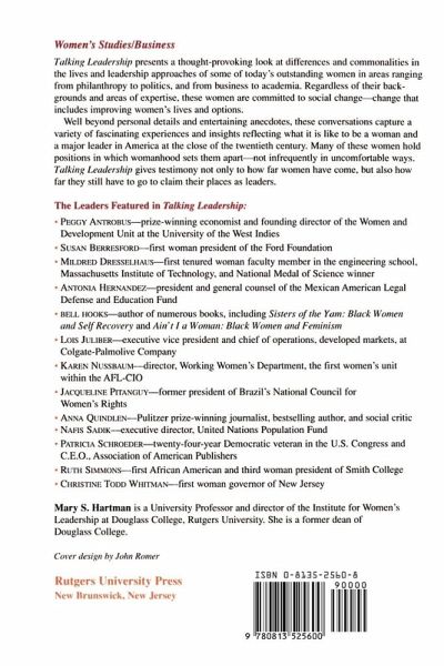 MARY S. HARTMAN is a University Professor and Director of the Institute for Women's Leadership at Douglass College, Rutgers University. She is a former dean of Douglass College.