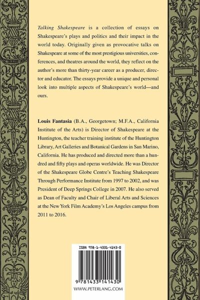Talking Shakespeare is a collection of essays on Shakespeare's plays and politics and their impact in the world today. Originally given as provocative talks on Shakespeare at some of the most prestigious universities, conferences, and theatres around the world, they reflect on the author's more than thirty-year career as a producer, director and educator. The essays provide a unique and personal look into multiple aspects of Shakespeare's world-and ours.