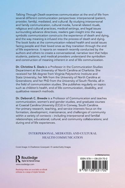 Talking Through Death examines communication at the end-of-life from several different communication perspectives: interpersonal (patient, provider, family), mediated, and cultural. By studying interpersonal and family communication, cultural media, funeral related rituals, religious and cultural practices, medical settings, and legal issues surrounding advance directives, readers gain insight into the ways symbolic communication constructs the experience of death and dying, and the way meaning is infused into the process of death and dying. The book looks at the communication-related health and social issues facing people and their loved ones as they transition through the end of life experience. It reports on research recently conducted by the authors and others to create a conversational, narrative text that helps students, patients, and medical providers understand the symbolism and construction of meaning inherent in end-of-life communication.