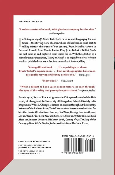 Studs Terkel (1912-2008) was an award-winning author and radio broadcaster. He is the author of Race: How Blacks and Whites Think and Feel About the American Obsession; Division Street: America, Coming of Age: Growing Up in the Twentieth Century; Talking to Myself: A Memoir of My Times; "The Good War": An Oral History of World War II; Working: People Talk About What They Do All Day and How They Feel About What They Do; The Studs Terkel Reader: My American Century; American Dreams: Lost and Found; The Studs Terkel Interviews: Film and Theater; Hard Times: An Oral History of the Great Depression; Will the Circle Be Unbroken?: Reflections on Death, Rebirth, and Hunger for a Faith; Giants of Jazz; Hope Dies Last: Keeping the Faith in Troubled Times; And They All Sang: Adventures of an Eclectic Disc Jockey ; Touch and Go: A Memoir; P.S.: Further Thoughts from a Lifetime of Listening; and Studs Terkel's Chicago, all published by The New Press. He was a member of the Academy of Arts and Letters and a recipient of a Presidential National Humanities Medal, the National Book Foundation Medal for Distinguished Contribution to American Letters, a George Polk Career Award, and the National Book Critics Circle 2003 Ivan Sandrof Lifetime Achievement Award.