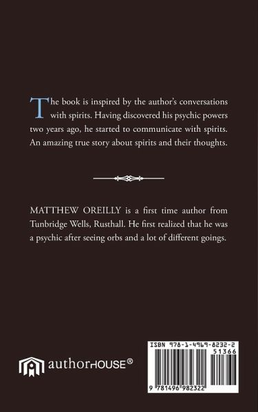 The book is inspired by the author?s conversations with spirits. Having discovered his psychic powers two years ago, he started to communicate with spirits. An amazing true story about spirits and their thoughts.