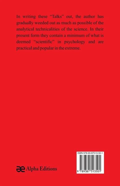 In writing these "Talks" out, the author has gradually weeded out as much as possible of the analytical technicalities of the science. In their present form they contain a minimum of what is deemed "scientific" in psychology and are practical and popular in the extreme.