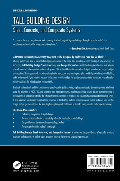 Addresses the Question Frequently Proposed to the Designer by Architects: "Can We Do This? Offering guidance on how to use code-based procedures while at the same time providing an understanding of why provisions are necessary, Tall Building Design: Steel, Concrete, and Composite Systems methodically explores the structural behavior of steel, concrete, and composite members and systems. This text establishes the notion that design is a creative process, and not just an execution of framing proposals. It cultivates imaginative approaches by presenting examples specifically related to essential building codes and standards. Tying together precision and accuracy-it also bridges the gap between two design approaches-one based on initiative skill and the other based on computer skill. The book explains loads and load combinations typically used in building design, explores methods for determining design wind loads using the provisions of ASCE 7-10, and examines wind tunnel procedures. It defines conceptual seismic design, as the avoidance or minimization of problems created by the effects of seismic excitation. It introduces the concept of performance-based design (PBD). It also addresses serviceability considerations, prediction of tall building motions, damping devices, seismic isolation, blast-resistant design, and progressive collapse. The final chapters explain gravity and lateral systems for steel, concrete, and composite buildings. The Book Also Considers: Preliminary analysis and design techniques The structural rehabilitation of seismically vulnerable steel and concrete buildings Design differences between code-sponsored approaches The concept of ductility trade-off for strength Tall Building Design: Steel, Concrete, and Composite Systems is a structural design guide and reference for practicing engineers and educators, as well as recent graduates entering the structural engineering profession. This text examines all major concrete, steel, and composite building systems, and uses the most up-to-date building codes.