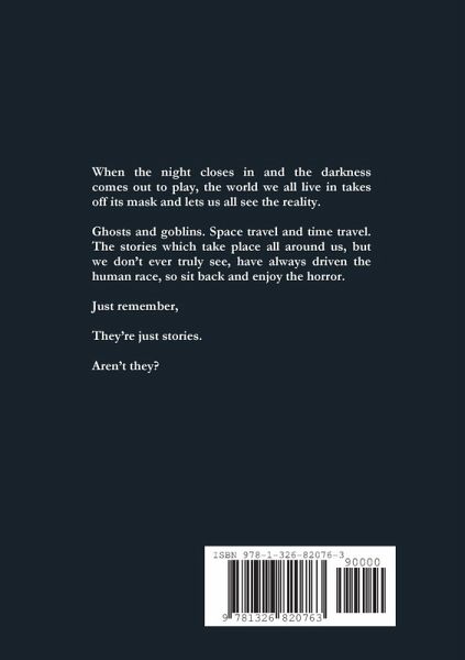 When the night closes in and the darkness comes out to play, the world we all live in takes off its mask and lets us all see the reality. Ghosts and goblins. Space travel and time travel. The stories which take place all around us, but we don't ever truly see, have always driven the human race, so sit back and enjoy the horror. Just remember, They're just stories. Aren't they?