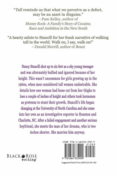 Nancy Stancill shot up to six feet as a shy young teenager and was alternately bullied and ignored because of her height. This wasn't uncommon for girls growing up in the 1960s, when men considered tall women undesirable. She details how one woman had bone cut from her thighs to lose a couple of inches of height and others took hormones as preteens to stunt their growth. Stancill's life began changing at the University of North Carolina and she came into her own as an investigative reporter in Houston and Charlotte, NC. After a failed engagement and another serious boyfriend, she meets the man of her dreams, who is two inches shorter. She marries him anyway.