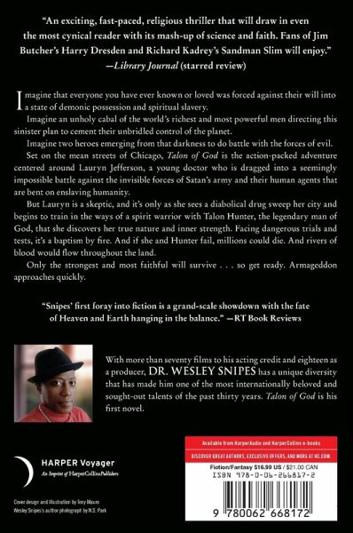 The acclaimed actor makes his fiction debut with this enthralling urban fantasy in which a holy warrior must convince a doctor with no faith to help stop a powerful demon and his minions from succeeding in creating hell on earth—a thrilling adventure of science and faith, good and evil, damnation and salvation. Imagine that everyone you have ever known or loved was forced against their will into a state of demonic possession and spiritual slavery. Imagine an unholy cabal of the world’s richest and most powerful men directing this sinister plan in order to cement their unbridled control of the planet. Imagine two heroes emerging from that darkness to do battle with the forces of evil. Set in the mean streets of Chicago, Talon of God is the action-packed adventure centered around the Lauryn Jefferson, a beautiful young doctor who is dragged into a seemingly impossible battle against the invisible forces of Satan’s army and their human agents that are bent on enslaving humanity in a mission to establish the kingdom of hell on Earth. But Lauryn is a skeptic, and it’s only as she sees a diabolical drug sweep her city and begins to train in the ways of a spirit warrior by the legendary man of God, Talon Hunter, that she discovers her true nature and inner strength. Facing dangerous trials and tests, it’s a true baptism by fire. And if they fail, millions could die. And rivers of blood would flow throughout the land. Imagine such horror. Such pain. And imagine what it would take to fight against it. For only the strongest and most faithful will survive? Get ready. Armageddon approaches quickly.