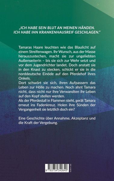 "Ich habe sein Blut an meinen Händen. Ich habe ihn krankenhausreif geschlagen."Tamaras Haare leuchten wie das Blaulicht auf einem Streifenwagen. Ihr Wunsch, aus der Masse herauszustechen, macht sie zur ungeliebten Außenseiterin - bis sie sich zur Wehr setzt und vor dem Jugendrichter landet. Doch anstatt sie in den Knast zu stecken, schickt er sie in die norddeutsche Einöde auf den Pferdehof ihres Onkels.Dort schwört sie sich, ihren Aufpassern das Leben zur Hölle zu machen. Noch ahnt Tamara nicht, dass nicht nur ihre Verwandten ihr Leben auf den Kopf stellen werden.Als der Pferdestall in Flammen steht, gerät Tamara erneut ins Fadenkreuz. Holen ihre Sünden der Vergangenheit sie letztlich doch ein? Eine Geschichte über Annahme, Akzeptanz und die Kraft der Vergebung.