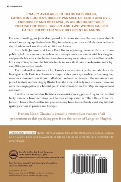 For every bustling jazz joint that opened in Korean War-era Harlem, a new church seemed to spring up. Tambourines to Glory introduces you to an unlikely team behind a church whose rock was the curb at 126th and Lenox. Essie Belle Johnson and Laura Reed live in adjoining tenement flats, adrift on public relief. Essie wants to somehow earn enough money to reunite with her daughter and provide her with a nice home; Laura loves young men, mink coats, and fine Scotch. On a day of inspiration, the friends decide to use a thrift-store tambourine and a layaway Bible to start a church. Their sidewalk services are a hit: Laura's a natural street performer who loves the limelight, while Essie is a charismatic singer with a quiet spirituality. Before long they move to a thousand-seat theatre called the Tambourine Temple. The two women are joined in their ministering by Birdie Lee, the little-old-lady trap drummer who can work the congregation to a feverish pitch, and Deacon Crow-For-Day, an impassioned confessor. But then Laura falls for Buddy, a scam artist who suggests selling to the faithful lucky numbers from Scripture and bottles of tap water as "Holy Water from the Jordan.” Even with a Cadillac and piles of money from Laura, Buddy won't stay faithful, igniting a crime of passion and betrayal. Harlem Moon Classics is proud to reintroduce readers of all generations to this sparkling gem from the canon of Langston Hughes.