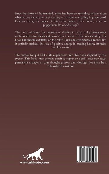 Since the dawn of humankind, there has been an unending debate about whether one can create one's destiny or whether everything is predestined. Can one change the course of fate in the middle of the events, or are we puppets on the world's stage? This book addresses the question of destiny in detail and presents some well-researched methods and proven tips to create or alter one's destiny. The book has elaborate debates on the role of luck and coincidences in one's life. It critically analyses the role of positive energy in creating habits, attitudes, and life events. The author has put all his life experiences into this book inspired by true events. This book may contain sensitive topics or details that may cause permanent changes in your thought process and ideology. Let there be a 'Thought Revolution'.