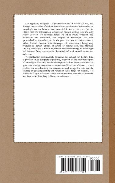 The legendary sharpness of Japanese swords is widely known, and through the activities of various martial arts practitioner's information on tameshigiri has also become more accessible in the recent years. But, for a large part, this information focusses on modern cutting tests and only briefly discusses the historical aspect. As far as sword collectors are concerned, the subject of tameshigiri has been approached by several experts in the past, but here too information is rather limited. This publication systematically processes this subject for the first time to provide an overview of the historical aspect of tameshigiri. Not only are the developments from mere sword tests to systematic cutting tests are addressed, it also explains the sword testers, the various cuts and set-ups for cuts, and the practice of recording cutting test results on sword tangs for example. It is rounded-off by a reference section which provides examples of tameshi-mei.
