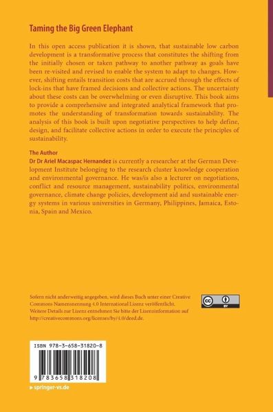 In this open access publication it is shown, that sustainable low carbon development is a transformative process that constitutes the shifting from the initially chosen or taken pathway to another pathway as goals have been re-visited and revised to enable the system to adapt to changes. However, shifting entails transition costs that are accrued through the effects of lock-ins that have framed decisions and collective actions. The uncertainty about these costs can be overwhelming or even disruptive. This book aims to provide a comprehensive and integrated analytical framework that promotes the understanding of transformation towards sustainability. The analysis of this book is built upon negotiative perspectives to help define, design, and facilitate collective actions in order to execute the principles of sustainability.