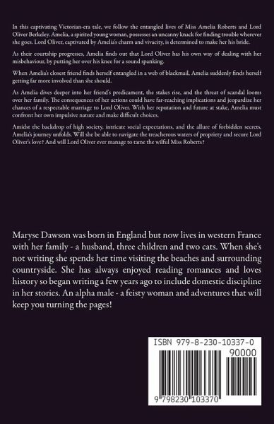 In this captivating Victorian-era tale, we follow the entangled lives of Miss Amelia Roberts and Lord Oliver Berkeley. Amelia, a spirited young woman, possesses an uncanny knack for finding trouble wherever she goes. Lord Oliver, captivated by Amelia's charm and vivacity, is determined to make her his bride. As their courtship progresses, Amelia finds out that Lord Oliver has his own way of dealing with her misbehaviour, by putting her over his knee for a sound spanking. When Amelia's closest friend finds herself entangled in a web of blackmail, Amelia suddenly finds herself getting far more involved than she should. As Amelia dives deeper into her friend's predicament, the stakes rise, and the threat of scandal looms over her family. The consequences of her actions could have far-reaching implications and jeopardize her chances of a respectable marriage to Lord Oliver. With her reputation and future at stake, Amelia must confront her own impulsive nature and make difficult choices. Amidst the backdrop of high society, intricate social expectations, and the allure of forbidden secrets, Amelia's journey unfolds. Will she be able to navigate the treacherous waters of propriety and secure Lord Oliver's love? And will Lord Oliver ever manage to tame the wilful Miss Roberts?