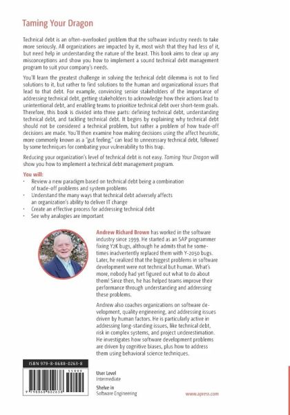 Therefore, this book is divided into three parts: defining technical debt, understanding technical debt, and tackling technical debt. It begins by explaining why technical debt should not be considered a technical problem, but rather a problem of how trade-off decisions are made. You'll then examine how making decisions using the affect heuristic, more commonly known as a "gut feeling," can lead to unnecessary technical debt, followed by some techniques for combating your vulnerability to this trap.