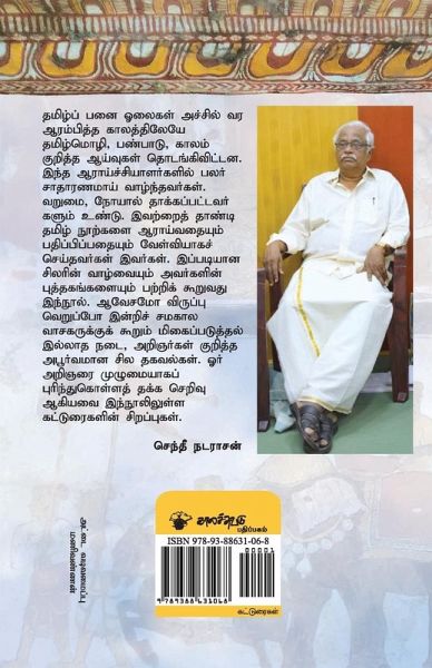 Research on Tamil language, culture has started from the times when Tamil was published in Palm leaves. Many of these researches lived in poverty, stricken by diseases. They considered researching and publishing Tamil books, a cause beyond such worldly sufferings. This book talks about some of those researchers and their lives. Written in a non-sentimental style, filled with rare information, this book introduces them, and gives the reader a chance to learn completely about them.