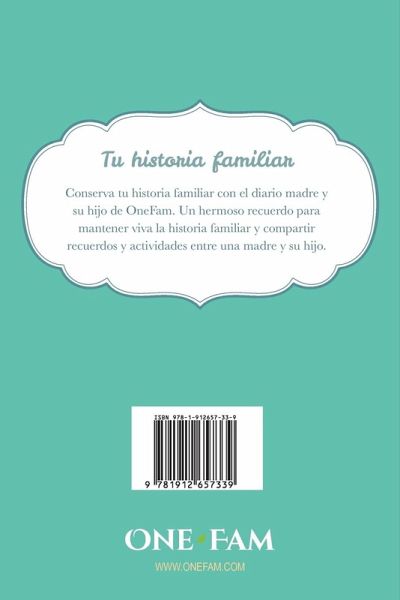 El diario interactivo hijo de OneFam le permite liberar el poder de la historia de su familia. Este asombroso diario de madre e hijo está lleno de actividades compartidas con preguntas perspicaces, pautas, dibujos, listas y mucho espacio de escritura libre que seguramente fortalecerá el vínculo entre madre e hijo. Discuta todo, desde recuerdos tempranos hasta crecer hasta los sentimientos sobre las situaciones e intereses de la vida. Una manera maravillosamente divertida y sencilla para que una madre y su hijo aprendan unos de otros en un nivel mucho más profundo. Diario interactivo de madre e hijo para comunicarse de ida y vuelta Más de 65 actividades conjuntas Las preguntas y preguntas guiadas exploran sueños, intereses y pensamientos Actividades divertidas compartidas para fortalecer la relación madre hijo Ilustraciones maravillosamente diseñadas para hacer de este un regalo hermoso y duradero Gran herramienta de comunicación Papel libre de ácido para preservar tus recuerdos para toda la vida 6 pulgadas * 9 pulgadas, 144 páginas