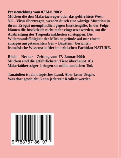 TanatolienWir leben im Zeitalter des Anthropozän, in dem der Mensch zu einem der wichtigtsten Einflussfaktoren auf die biologischen geologischen und atmosphärischen Prozesse auf der Erde geworden ist. Gottgleich entscheidet er, welche Wesen leben dürfen und welche nicht.Dem Zauberlehrling misslingt sein Schöpfungsversuch.Tanatolien wird zu einem Land der Kannibalen und zur Hölle