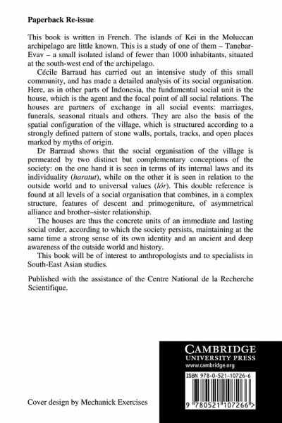 This book is written in French. The islands of Kei in the Moluccan archipelago are little known. This is a study of one of them, Tanebar-Evav, a small isolated island of fewer than 1000 inhabitants, situated at the south-west end of the archipelago. Cecile Barraud has carried out an intensive study of this small community and has made a detailed analysis of its social organisation. Here, as in other parts of Indonesia, the fundamental social unit is the house, which is the agent and focal point of all social relations. The houses are partners of exchange in all social events: marriages, funerals, seasonal rituals and others. The houses are thus the concrete units of an immediate and lasting social order, according to which the society persists, maintaining a the same time a strong sense of its own identity and an ancient and deep awareness of the outside world and history. This book will be of interest to anthropologists and to specialists in South-east Asian studies.