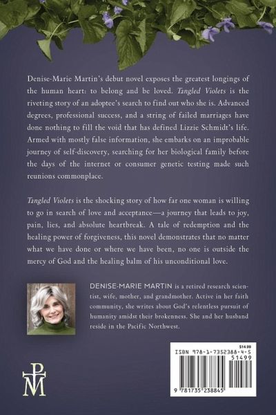 Award-Winning Finalist in the Christian Inspirational category of the 2022 American Fiction Awards Denise-Marie Martin's debut novel exposes the greatest longings of the human heart: to belong and be loved. Tangled Violets is the riveting story of an adoptee's search to find out who she is. Advanced degrees, professional success, and a string of failed marriages have done nothing to fill the void that has defined Lizzie Schmidt's life. Armed with mostly false information, she embarks on an improbable journey of self-discovery, searching for her biological family before the days of the internet or consumer genetic testing made such reunions commonplace. Tangled Violets is the shocking story of how far one woman is willing to go in search of love and acceptance-a journey that leads to joy, pain, lies, and absolute heartbreak. A tale of redemption and the healing power of forgiveness, this novel demonstrates that no matter what we have done or where we have been, no one is outside the mercy of God and the healing balm of his unconditional love. Warning: This novel deals with the devastation of incest and the work of recovery-a topic rarely discussed in Christian fiction.