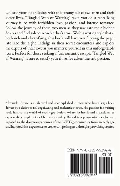 Unleash your inner desires with this steamy tale of two men and their secret lives. "Tangled Web of Wanting" takes you on a tantalizing journey filled with forbidden love, passion, and intense romance. Follow the journey of these two men as they navigate their hidden desires and find solace in each other's arms. With a writing style that is both rich and electrifying, this book will have you flipping the pages late into the night. Indulge in their secret encounters and explore the depths of their love as you immerse yourself in this unforgettable story. Perfect for those seeking a fun, romantic escape, "Tangled Web of Wanting" is sure to satisfy your thirst for adventure and passion.