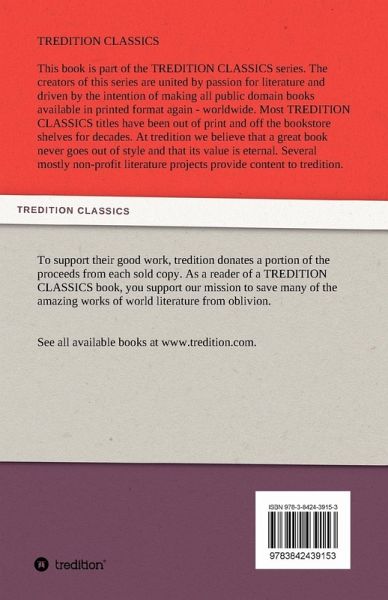This book is part of the TREDITION CLASSICS series. The creators of this series are united by passion for literature and driven by the intention of making all public domain books available in printed format again - worldwide. At tredition we believe that a great book never goes out of style. Several mostly non-profit literature projects provide content to tredition. To support their good work, tredition donates a portion of the proceeds from each sold copy. As a reader of a TREDITION CLASSICS book, you support our mission to save many of the amazing works of world literature from oblivion.