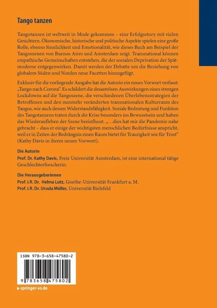 Exklusiv für die vorliegende Ausgabe hat die Autorin ein neues Vorwort verfasst: Tango nach Corona . Es schildert die desaströsen Auswirkungen eines strengen Lockdowns auf die Tangoszene, die verschiedenen Überlebensstrategien der Betroffenen und den nunmehr veränderten transnationalen Kulturraum des Tangos, wie auch dessen Widerstandsfähigkeit. Soziale Bedeutung und Funktion des Tangotanzens traten durch die Krise besonders ins Bewusstsein und haben das Wiederaufleben der Szene beeinflusst. dies hat mir die Pandemie nahe gebracht - dass er einige der wichtigsten menschlichen Bedürfnisse anspricht, weil er in Zeiten der Bedrängnis einen Raum bietet für Traurigkeit wie für Trost (Kathy Davis in ihrem neuen Vorwort).