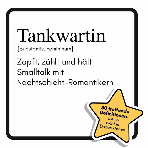Nachts, wenn die Straßen leer sind und die Zapfsäulen leise summen, beginnt das wahre Leben an der Tankstelle. "Tankwartin: Zapft, zählt und hält Smalltalk mit Nachtschicht-Romantikern" entführt in eine Welt voller Dieselduft, Kassenbonorakel und Reifendruckprüfer - mit 50 humorvollen Definitionen und liebevoll gezeichneten Illustrationen, die den Alltag hinter der Plexiglasscheibe auf die Schippe nehmen.Für wen dieses Buch perfekt ist:- Für Nachteulen, die das Leben an der Tankstelle kennen oder lieben- Für Fans von skurrilem Alltagswitz und feiner Beobachtungsgabe- Für alle, die schon immer wissen wollten, was nachts an der Zapfsäule wirklich passiertEin Geschenk für alle, die zwischen Kaffeeautomat und Snackregal schon mal einen echten Charakter getroffen haben. "Tankwartin: Zapft, zählt und hält Smalltalk mit Nachtschicht-Romantikern" feiert die kleinen Dramen, großen Geschichten und absurden Momente des Tankstellenlebens.Was dieses Buch bietet:- 50 witzige Definitionen rund um den Tankstellenalltag- Passende Illustrationen zu jedem Begriff- Einblicke in die skurrile Welt der Nachtschicht- Perfekt als Geschenk für Alltagshelden und Nachtschwärmer