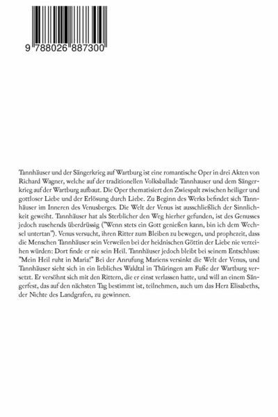 Tannhäuser und der Sängerkrieg auf Wartburg ist eine romantische Oper in drei Akten von Richard Wagner, welche auf der traditionellen Volksballade Tannhauser und dem Sängerkrieg auf der Wartburg aufbaut. Die Oper thematisiert den Zwiespalt zwischen heiliger und gottloser Liebe und der Erlösung durch Liebe. Zu Beginn des Werks befindet sich Tannhäuser im Inneren des Venusberges. Die Welt der Venus ist ausschließlich der Sinnlichkeit geweiht. Tannhäuser hat als Sterblicher den Weg hierher gefunden, ist des Genusses jedoch zusehends überdrüssig ("Wenn stets ein Gott genießen kann, bin ich dem Wechsel untertan"). Venus versucht, ihren Ritter zum Bleiben zu bewegen, und prophezeit, dass die Menschen Tannhäuser sein Verweilen bei der heidnischen Göttin der Liebe nie verzeihen würden: Dort finde er nie sein Heil. Tannhäuser jedoch bleibt bei seinem Entschluss: "Mein Heil ruht in Maria!" Bei der Anrufung Mariens versinkt die Welt der Venus, und Tannhäuser sieht sich in ein liebliches Waldtal in Thüringen am Fuße der Wartburg versetzt. Er versöhnt sich mit den Rittern, die er einst verlassen hatte, und will an einem Sängerfest, das auf den nächsten Tag bestimmt ist, teilnehmen, auch um das Herz Elisabeths, der Nichte des Landgrafen, zu gewinnen.