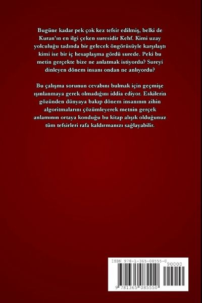 Bugüne kadar pek çok kez tefsir edilmi¿, belki de Kuran'¿n en ilgi çeken suresidir Kehf. Kimi uzay yolculüu tad¿nda bir gelecek öngörüsüyle kar¿¿lät¿ kimi ise bir iç hesapläma gördü surede. Peki bu metin gerçekte bize ne anlatmak istiyordu? Sureyi dinleyen dönem insan¿ ondan ne anl¿yordu? Bu çal¿¿ma sorunun cevab¿n¿ bulmak için geçmi¿e ¿¿¿nlanmaya gerek olmad¿¿¿n¿ iddia ediyor. Eskilerin gözünden dünyaya bak¿p dönem insan¿n¿n zihin algoritmalar¿n¿ çözümleyerek metnin gerçek anlam¿n¿n ortaya kondüu bu kitap al¿¿¿k oldüunuz tüm tefsirleri rafa kald¿rman¿z¿ sälayabilir.