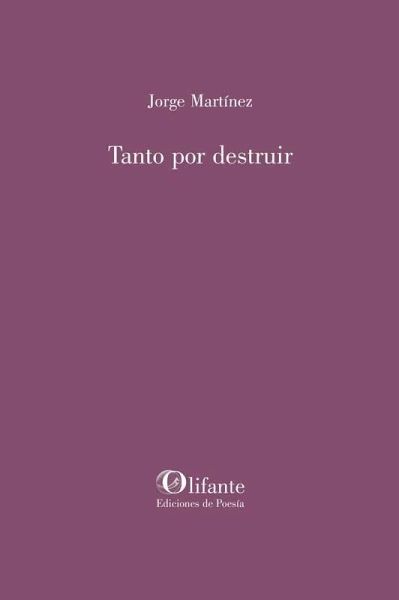 Nuevo libro del poeta y músico Jorge Martínez, publicado por Olifante Ediciones de Poesía. En palabras de Estela Puyuelo en la solapa del volumen: "A partir del desamor como eje, tal vez del desamparo, Tanto por destruir erige todo un salmo apocalíptico mediante la superposición de imágenes hirientes que se cimentan en preocupaciones de raíz existencial: la soledad impuesta, la ruina del tiempo, la amarga injusticia, la muerte liberadoraà Pero el verdadero asunto de este poemario que roza lo epistolar no es tanto el sufrimiento ocasionado por el destinatario: el amor ausente, sino la rebeldía de un ser humano que se cierne con arrojo y mesura sobre la nostalgia".