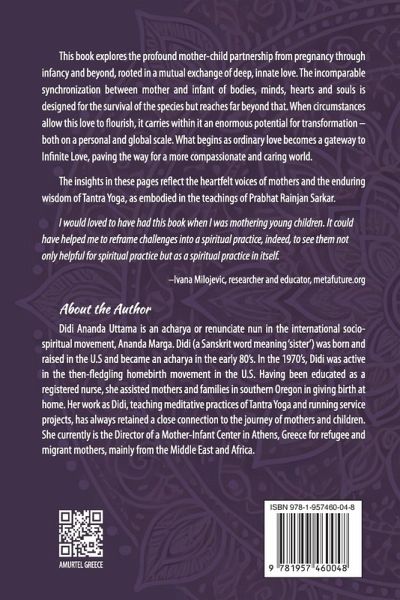 Tantric Mothering: A Path of Practical Love, Spiritual Growth, and Planetary Change, embarks on a journey that redefines the mother-child relationship as a profound spiritual partnership. It explores this partnership from pregnancy through infancy and beyond, rooted in a mutual exchange of deep, innate love. The incomparable synchronization between mother and infant of bodies, minds, hearts and souls is designed for the survival of the species but reaches far beyond that. When circumstances allow this love to flourish, it carries within it an enormous potential for transformation - both on a personal and global scale. What begins as ordinary love becomes a gateway to Infinite Love, paving the way for a more compassionate and caring world. Through the heartfelt words of mothers themselves, this book shows how the mother-child relationship can:Serve as a gateway to experiencing infinite love in its truest form Help mothers integrate meditative practices into daily parenting routines Reinforce parenting as a spiritual practice in itself The insights in these pages reflect the voices of mothers and the enduring wisdom of Tantra Yoga, as embodied in the teachings of Prabhat Rainjan Sarkar.