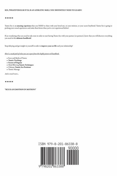SEX, WHATEVER ELSE IT IS, IS AN ATHLETIC SKILL YOU DEFINITELY NEED TO LEARN! ¿¿¿¿¿ Tantra Sex is an amazing experience that you NEED to share with your loved one, or your mistress, or your secret boyfriend. Tantra Sex is going to prolong your sexual experiences and make them better than you've ever experienced before! If are wondering what you need to take note in order to start having Tantra Sex with your partner (or partners), know that you will discover everything you need in this ultimate handbook! Stop delaying and get insight in yourself in order to improve your sex life and your relationship! Here's a sneak peek of what you can expect from this highly potent evil handbook,Facts and Myths of Tantra Tantric Teachings Secrets of Orgasm Mind-Blowing Tantric Techniques Ultimate Tantric Sex Positions Tantric Massage And so much more... ¿¿¿¿¿ "SEX IS AN EMOTION IN MOTION!"